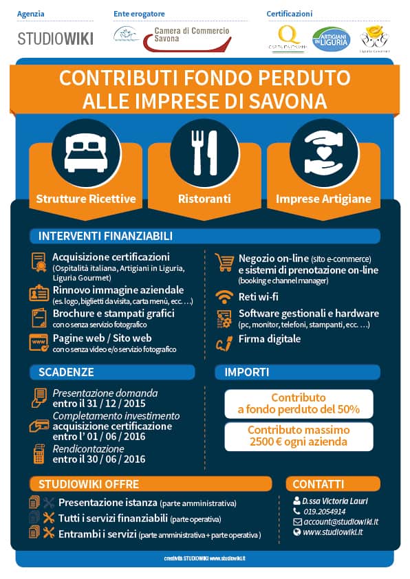 NewsNovembre 5, 2015 Contributi fondo perduto alle imprese di SavonaContributi a fondo perduto del 50% alle imprese di Savona in collaborazione con byFederico Alberto