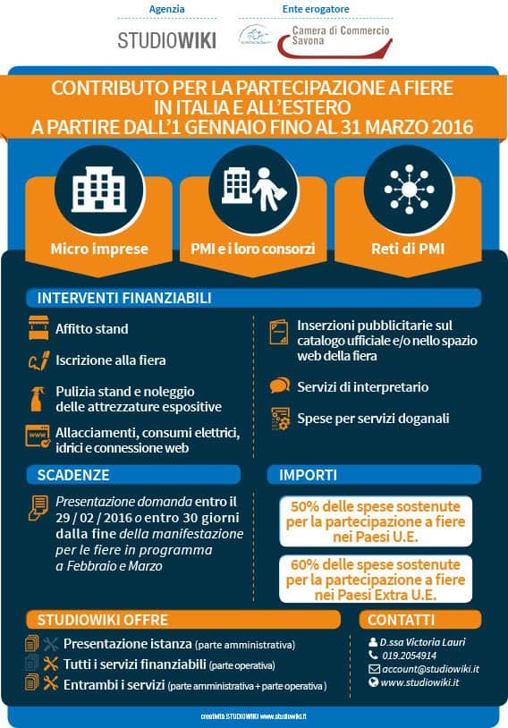 NewsFebbraio 12, 2016 Contributi per la partecipazione a fiere nel 2016Contributo fino al 60% delle spese sostenute per partecipare a fiere byFederico Alberto