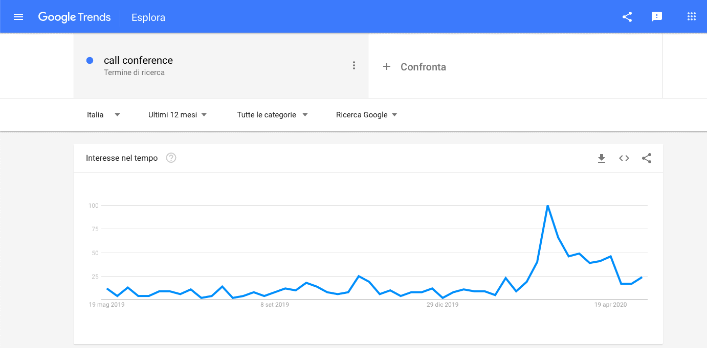 E così, se tra la fine di febbraio e l’inizio di marzo abbiamo cercato (e quindi imparato) le parole della virologia e della epidemiologia, nello stesso periodo i Google trends ci raccontano l’interesse delle persone nei confronti dello smartworking, delle call conference e della gamma di attività da remoto.
