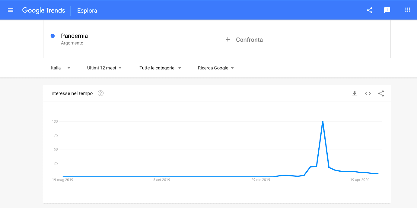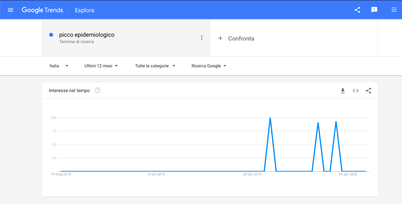 Grafici di Google Trends per Pandemia e Picco epidemiologico