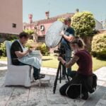 Quando si gira, e lo sa chi lo fa, il tempo della vita, le giornate, cambiano ritmo, cercando di allinearsi sul muoversi della luce e il suo mutare. C’è il tempo meteorologico, se fa brutto sono cazzi e ci sono i cover set, ma c’è soprattutto il tempo fisico, quello astronomico, quello copernicano dei moti di rotazione e rivoluzione. E se si gira, come in questo caso, tra la fine di maggio e l’inizio di giugno – così vicini al solstizio d’estate – dove il dì è tanto lungo da parere infinito, ci si ritrova a puntare la sveglia alle 4 del mattino per girare l’alba e, particolarmente ed inevitabilmente stanchi e felici, alle 9 di sera nel pieno della golden hour, ad aspettare che l’ultimo strappo di sole svanisca dietro le colline ad ovest. Lo spazio e le sue bellezze sono scelti sulla base del tempo, della luce e del suo mutare. Ed è così che mai come questa volta abbiamo sentito con mano e visto con gli occhi quanto le cose giungano ad essere percepibili nello spazio in modo e maniera possibile solo grazie al palcoscenico che gli viene donato dalla luce, ovvero dal tempo. L’immagine che abbiamo impresso è la rappresentazione dei fenomeni nello spaziotempo.