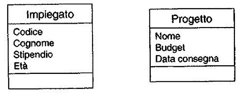 - entità: rappresentano classi di oggetti (fatti, cose, persone), che hanno elementi comuni. Una occorrenza di un’entità è un oggetto della classe che l’entità rappresenta. (g. Entità = CITTA’ – Occorrenza = SAVONA). Ogni entità ha un nome che la identifica univocamente e viene rappresentata graficamente mediante un rettangolo con il nome dell’entità all’interno.